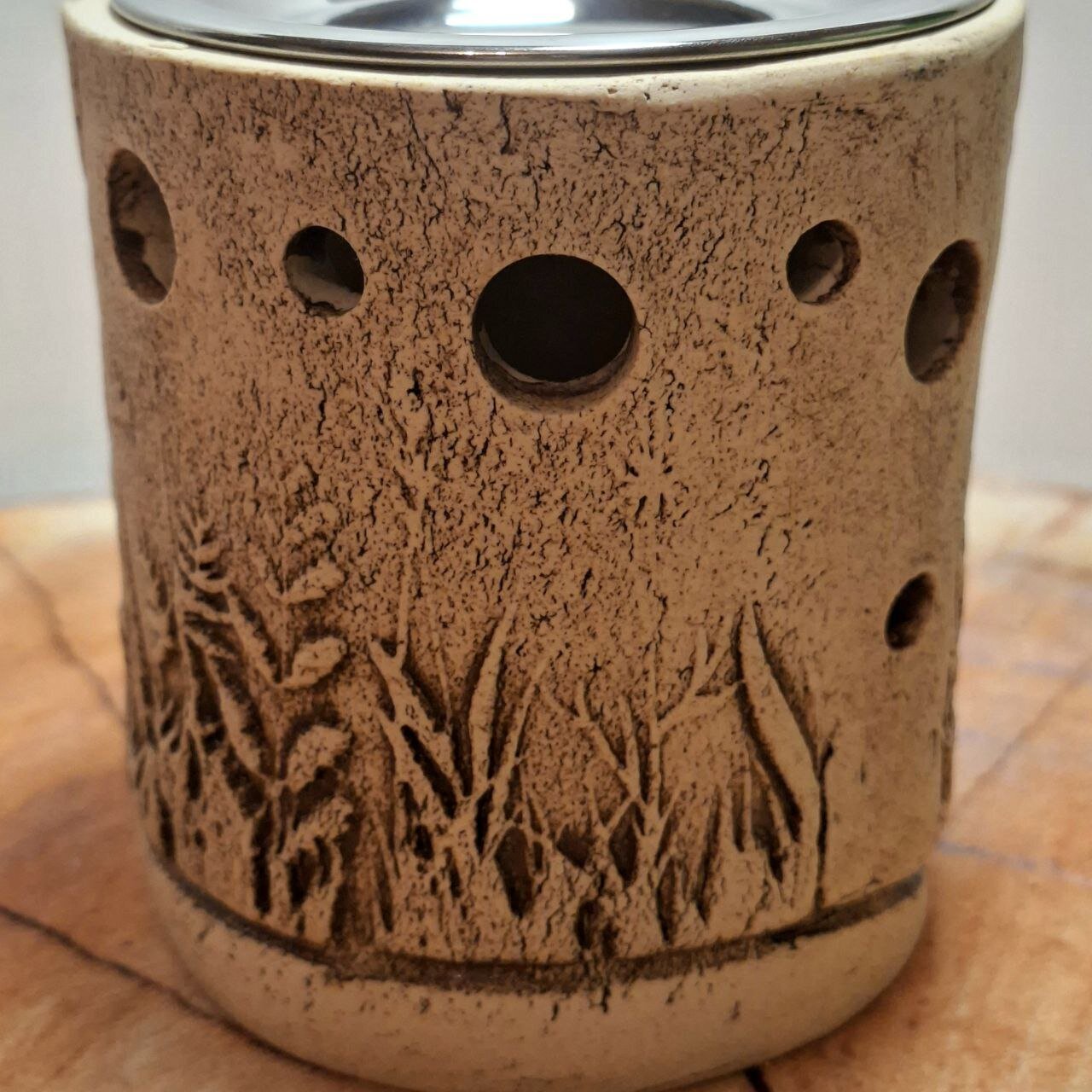 Die liebevolle Handwerkskunst und das einzigartige Design dieses Stövchens mit dem Motiv der verschiedenen Kräuter machen es zu einem besonderen Begleiter für deine Räucherungen. Jedes Stück ist ein Unikat und wird mit einer Räucherplatte aus Edelstahl und einem Teelicht geliefert.