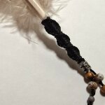 Die Naturfeder ist mit einem handgeknüpften Griff und ausgewählten Perlen geschmückt – jedes Stück ist ein Unikat mit einer Größe von ca. 25 cm und trägt seine eigene Energie.