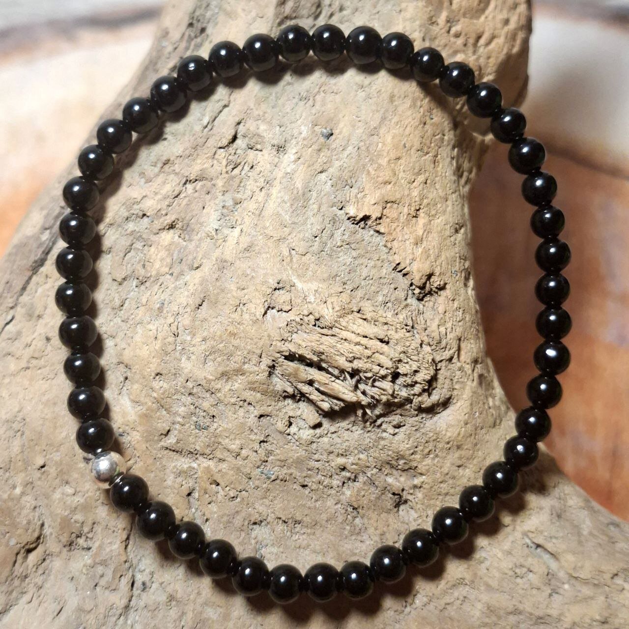 Schlichtes Turmalin Armband mit fein geschliffenen 3 mm Perlen auf elastischem Gummi gearbeitet. Eine einzelne Silberperle setzt einen ruhigen Akzent. Länge 18 cm. Angenehm zu tragen und alltagstauglich.